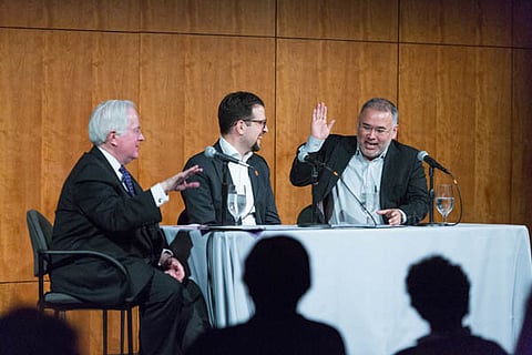 Opera News Editor in Chief F. Paul Driscoll hosted an intimate interview session with Javier Camarena, and Luca Pisaroni of the Metropolitan Opera revival of I Puritani at the Kaplan Penthouse, Samuel B. and David Rose Building of Lincoln Center, on February 15, 2017. The cast has been garnering attention worthy of comparison with the opera's original "Puritani Quartet" of 1835. Camarena and Pisaroni discussed the challenges and joys of performing during "Opera News Singers' Studio Presents: Casual Conversations" event.