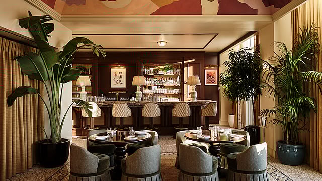 Step off the elevator and you’re instantly transported. The club's entrance is defined by geometric metalwork and hand-painted de Gournay wallpaper—a visual homage to the Walker Building’s stone detailing and the city’s famed cherry blossoms. Each detail, down to the custom mosaic floors and De Stijl-inspired patterns, reflects a reverence for time-honored craftsmanship wrapped in a thoroughly modern lens.