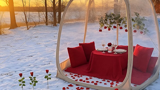 For couples drawn to intimate moments with a creative edge, The Muse New York offers a Valentine’s Day experience that feels both playful and considered. The boutique hotel’s Cozy by Hudson Package centers on a private igloo picnic along the Hudson River, styled by PikNYC. The experience includes plush seating, soft lighting, and sunset views over the water, creating a romantic outdoor setting that feels distinctly seasonal without sacrificing comfort.