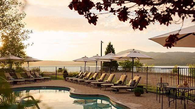 Guests can rotate between the heated pool, cold plunge, and barrel sauna, creating a restorative ritual framed by alpine air and lake views. The setting transforms the waterfront into a year-round wellness destination, extending the appeal well beyond ski season.