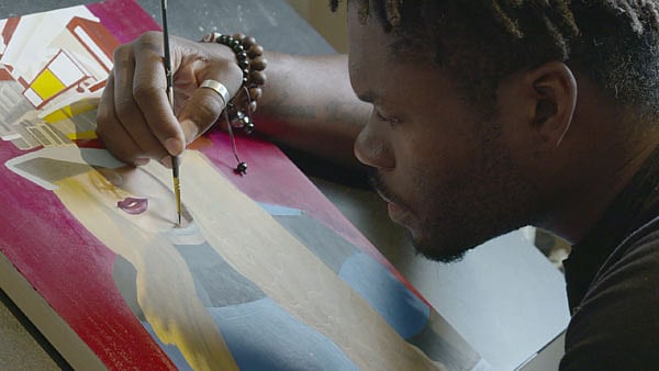 As a black man, I pursue telling stories that relate most closely to me and of those I have grown up around. So though my work spans racially, it does tend to skew more black, and the narratives lean more toward the idea of strength or agency. Most of my work is about owning oneself. So I play with the scene, add and take away, to distract while forcing the viewer to realize the figure in the space.