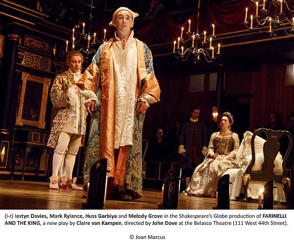 "Farinelli and the King" plays through March 25, 2018, at the Belasco Theatre (111 West 44th Street). For tickets, call: 800.432.7250 or farinelliandthekingbroadway.com Through Feb. 4th, there are 2 for the price of 1 tickets during Broadway week nycgo.com/events/farinelli-and-the-king