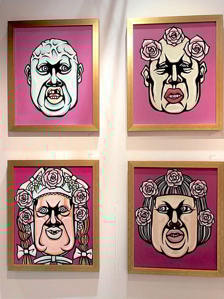 The works in the current collection, which are being shown in the United States for the first time at the expo, are just as out of the box and original as the artist. Cookie, who was born in the Shiga Prefecture of Japan, is part of the Yasei Bakudan comedy duo. From his scripts to his sketches, Cookie puts his whole self and creative side into all of his projects. The theme of his exciting and eccentric exhibit is Nikuguso Otome, or "meat feces maiden." The artist sometimes even paints his own face in a manner which resembles recognizable figures from both Japan and overseas.