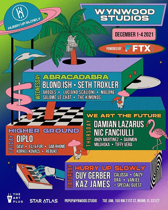 The events will be powered by FTX — a US-regulated cryptocurrency exchange with a mission to grow the digital currency ecosystem. Already one of the biggest players in the world of crypto, FTX recently launched its new NFT Marketplace and will partner with Wynwood Studios to expand NFT accessibility to eager participants. Aiming to remain at the forefront of trends in the art, music, and technology industries, FTX continues to establish its leadership, showcasing its latest venture at one of the world's largest art events.