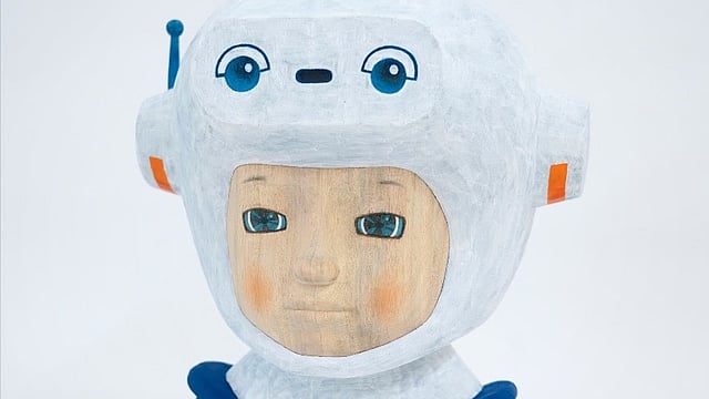Satoru Koizumi’s carved wooden sculptures—part human, part animal—reflect the precision of traditional Japanese craftsmanship while confronting the quiet alienation of modern life. Their vacant gazes and hybrid forms evoke both serenity and disquiet, drawing the viewer into an intimate space of contemplation.