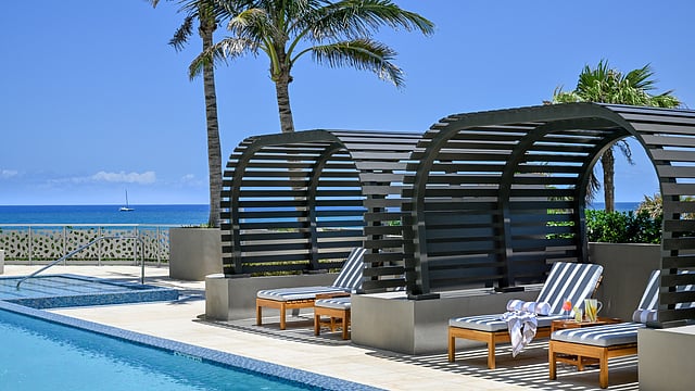 Beyond the spa, guests enjoy the largest private beach on Singer Island, 300 feet of pristine shoreline, as well as a landscaped third-level pool with cabanas and sweeping Atlantic views. Over 10,000 square feet of event space accommodates corporate retreats and wellness conferences, making Amrit equally suited for personal renewal and group gatherings.