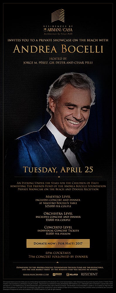 When completed in 2019, the tower will feature over 35,000-square-feet of incomparable amenities across two floors, including an Armani Prive Lounge, a fine dining restaurant, cigar room and wine cellar, heated swimming pool, ocean-facing fitness center, two-story revitalization spa with indoor and outdoor treatment rooms, movie theatre and clubroom, and exclusive beach amenities on a 300-foot stretch of private shore.