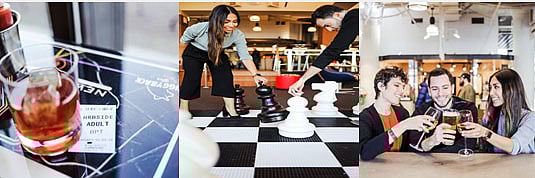 The Lutze – Harborside's waterfront biergarten – will provide a full bar inside the grand Atrium where guests will also enjoy NCAA Final Four action on 20-ft jumbo screens. To add to the fun, foosball, cornhole, giant chess, beer pong, and music will take place all night.