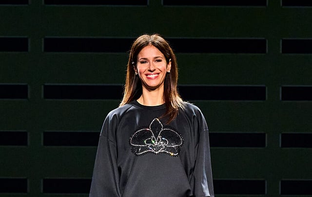 The orchid is the flower of Genny's vibrant woman, who on this occasion symbolizes the allure of a luminous noir. A celebratory reference to the sparkling, mysterious, and iconic beauty of Eva Kant, which Sara Cavazza has embraced as a tribute to her story of refined freedom. Dresses, sheath dresses, suits, and jackets are instruments of an aesthetic rich in transitions, opportunities for vision, and eclecticism. They are inlaid, underlined geometrically composed of creative asymmetries.