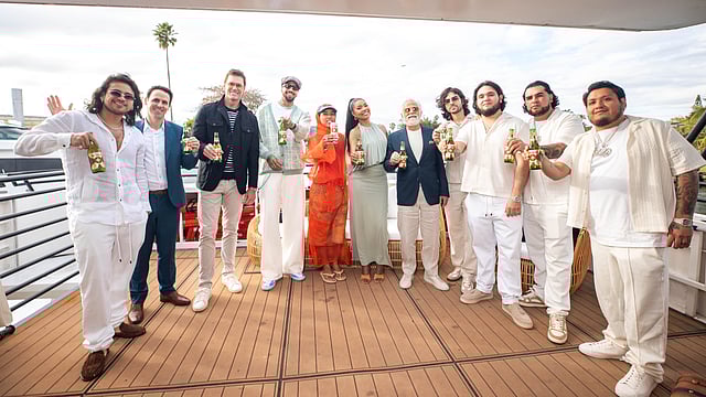 Held just miles from the stadium, the event unfolded aboard yachts and along the water, where cold Dos Equis beers and sunlit views set the scene for a gathering designed to feel spontaneous rather than scripted. At its center was Jonathan Goldsmith, reprising his role as the iconic figure whose presence has long been synonymous with the brand’s Stay Thirsty ethos.