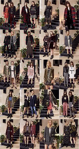 The women's collection provides a take on a retro psychedelic spirit combined with a feminine romantic feel. Delicate English rose florals mixed with baroque patterns in fluid fabrics influenced by the opulent style from the rocker wives such as Marianne Faithful and Bianca Jagger.
