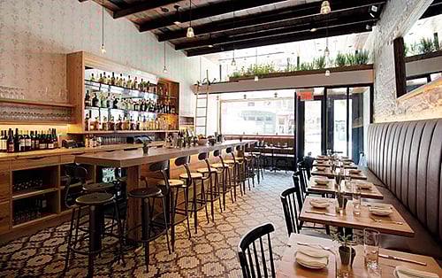 When it comes to entrees, plancha marina with seared scallop, seppiolini, shrimp, piperada and aioli is a seasonal ode to Catalan cuisine. Black sea bass with artichoke, baby carrots, fennel and labneh is another signature dish that owes as much to American playfulness as it does to a Mediterranean sensibility. Let's just say, many of these belong to international waters. For landlubbers, there's the sumptuous roasted chicken with gnocchi, escarole, roasted tomato, maitake and pancetta; and for fuller fare, the grilled hanger steak with Jerusalem artichoke, spinach, onion jam and – that final note punctuating the earthy texture – chanterelles and bordelaise.