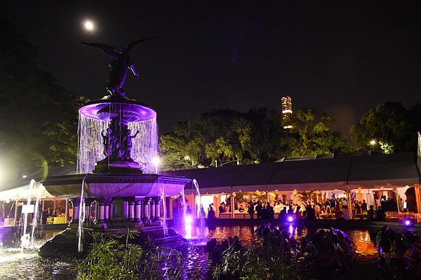 A picnic in the park on a summer afternoon is everything you could want to absorb all the city has to offer—when it's that time between day and night, when everyone takes a moment and the hum slowly dissipates, the scramble becomes order and the people finally stop to breathe and watch the sunset as the day comes to a close. This is the time to relax, before nightfall, when the party starts. This is also the perfect time to host a tea party. On Wednesday June 7, Central Park hosted a luxurious party where over 800 New Yorkers enjoyed a feast under the moon light at the Bethesda Terrace in Central Park to support Central Park Conservancy's annual summer benefit. This year the conservancy raised over $800,000 to maintain Manhattan's favorite backyard. As the sun set over the famous Angel of the Waters statue atop the picturesque fountain, guests enjoyed tastings prepared by celebrated NYC chefs and restaurants, sipped inventive cocktails, and danced the night away to music by DJ Kiss. The event was presented by Macquarie.