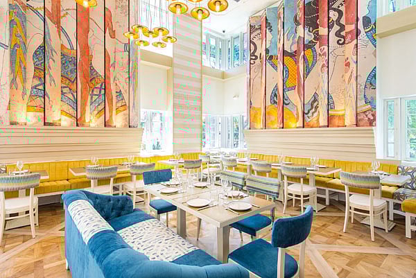 Guests are brought in by the splashy bright array of ocean blues and mustard yellows mixed in with tasteful patterns in a spacious 240 seat setting, with two private rooms for groups, a lounge and upstairs dining room and outdoor dining area perfect for the Florida sunset afternoons.