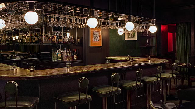 The Joyce also incorporates elevated design elements, from Gio Ponti’s iconic dining chairs to Joe Colombo’s sleek bar stools. Guests enter through a hidden doorway veiled by dark green drapery and custom walnut millwork, stepping into an intimate 45-seat dining room where curated art pieces—including works by Picasso and Basquiat—add to the ambiance.