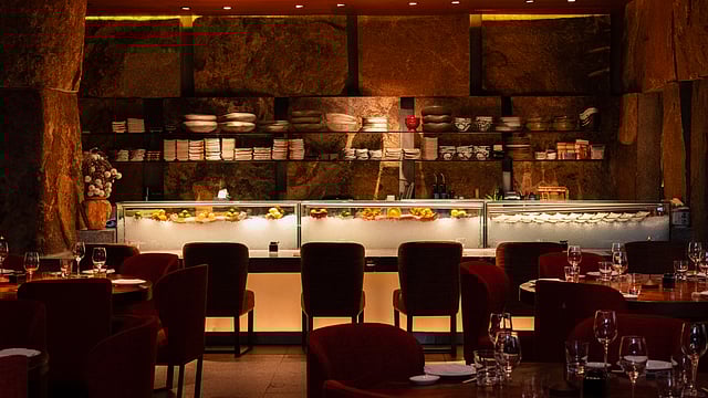 Designed by Tokyo-based visionary Noriyoshi Muramatsu of Studio Glitt, Zuma New York reflects the vibrancy and energy of the city itself. The 100-seat main dining room is clad in raw yet refined materials—mill-scale iron, rough-hewn granite, reclaimed monkeypod wood, rich leathers, and glass—all echoing the four elements of earth, fire, water, and air.