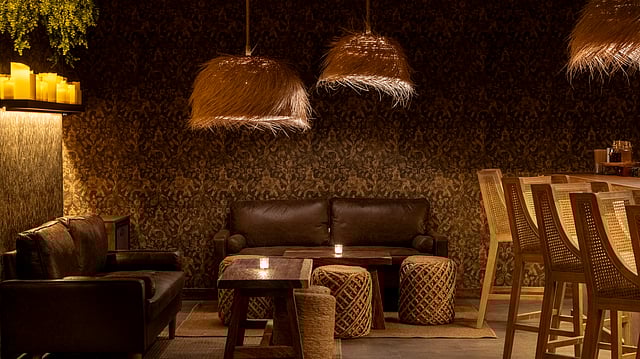 Amante’s setting mirrors the spirits it celebrates: sensual, intimate, and immersive. A backlit bar framed by warm wood tones and woven rattan accents casts a golden glow across the room. The atmosphere is elegant but relaxed, creating the perfect environment for conversation and connection.