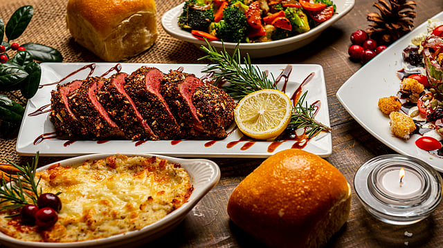 The holiday menu is $59 for adults and $29 for young diners 12 and under. Guests can begin with a Hearthside Old Fashioned made with Wild Turkey bourbon, house-spiced orange syrup, angostura, and orange bitters for $16.50.