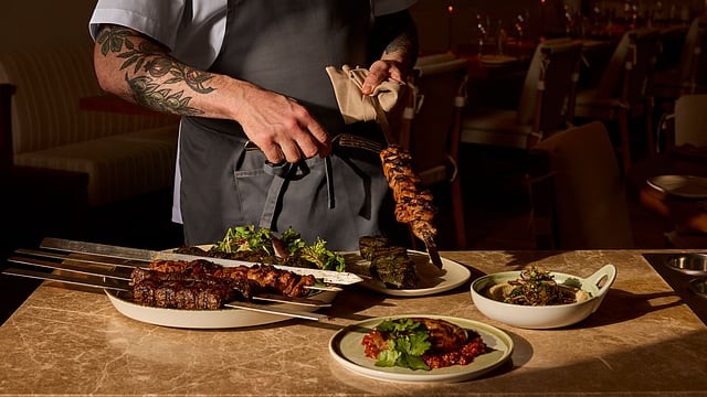 Faena’s signature dining room, Los Fuegos by Francis Mallmann, brings holiday drama through Mallmann’s mastery of fire. Bluefin Tuna Crudo topped with Osetra caviar signals luxury from the start, while dishes like Branzino “A La Brasa” and wood-fired Wagyu hanger steak highlight the restaurant’s flame-kissed approach. A Hazelnut Cream Yule Log completes the menu with pear chantilly, praline crunch, and Pear Williams sorbet, creating a seasonal finale that mirrors the restaurant’s theatrical energy.