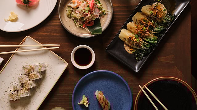 A vibrant spread of sushi, small plates, and seasonal dishes captures the social, shareable spirit of spring dining in Palm Beach