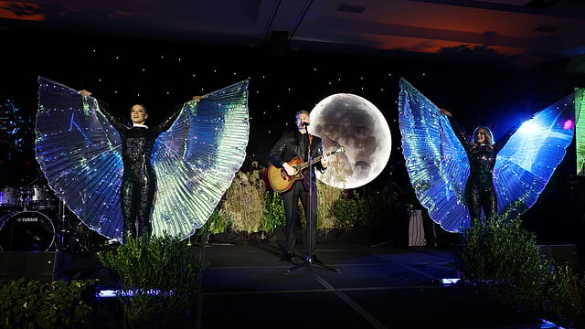 Guests gathered for cocktails beside the Carousel at Pier 62, a fitting prelude to an evening defined by movement and celebration. A dynamic dance troupe guided attendees to Pier Sixty with flowing fabrics and illuminated kites before dinner and tributes commenced. The scene—lush with greenery and softly glowing lanterns—embodied the event’s “Midnight Garden” theme, celebrating nature’s beauty against the city’s electric energy.