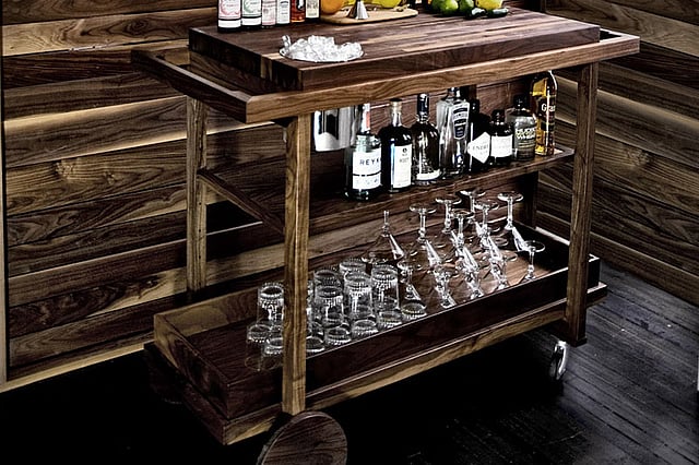 Frankly, it won't matter what you're serving your guests to eat if you've got a fully-stocked bar cart that looks this good. It's crafted from black walnut from New England, has a removable top tray, and is pretty much a holiday party's best friend.