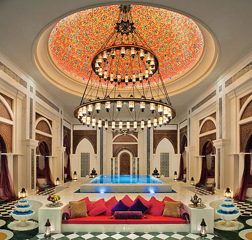 The 202 suite-only duplex accommodations offers discreet in room check-in, a private reception on every floor along with floor-to-ceiling windows offering spectacular Arabian Gulf views, mosaic-tiled bathrooms, Hermès products and a pillow menu with every imaginable option. You will surely feel like a sheikh in your own palace with interiors adorned in 24-karat gold, lavish textures and exuberant colors. Other opulent amenities standard for all suites include 21-inch iMac, remote controlled environment including curtains, TV, in-suite music and lights and an exclusive 24-carat gold iPad for use as a "virtual concierge." For those seeking the ultimate imperial treatment, The Royal Suite even has a revolving bed and a private cinema.