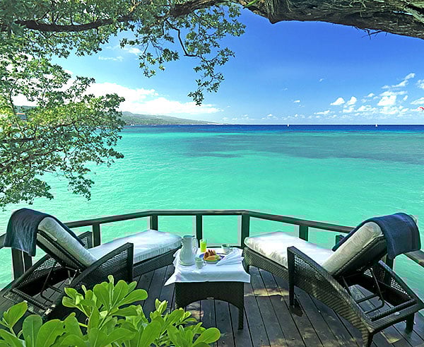 There are 52 rooms and cottages on property located on a secluded stretch of beach which I would imagine is not easy to come by on an island filled with large, all-inclusive resorts. The Jamaica Inn has just two floors; the ground floor rooms offer large verandas for easy access directly to the beach. All accommodations have ocean views so you can't go wrong with ground or second floor rooms, which have small terraces. There are seven cottages just past the main building with one and two bedrooms. Cottage number 7 is the largest offering a two-story one-bedroom slice of heaven with a sprawling living room, luxurious bathroom, outdoor shower and private plunge pool with direct access down into the ocean below, perfect for a honeymoon couple. There are no TV's in the rooms but I highly doubt anyone will miss them.