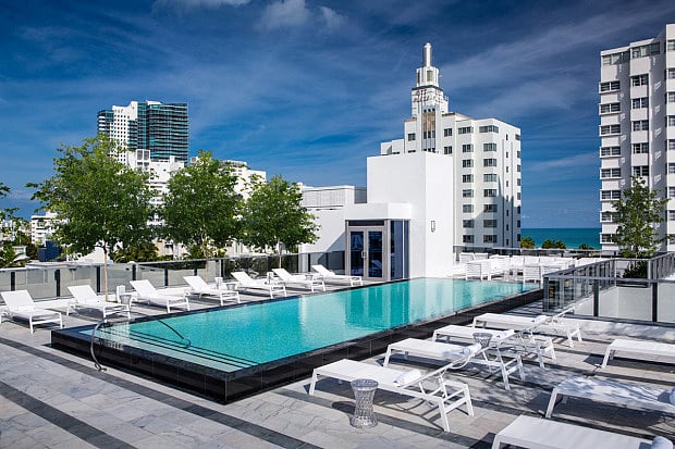 There is a beautiful 5,000 square foot rooftop pool gleaming with full sun throughout the day along a lounge serving cocktails and small bites. In the evening the hotel plays host to one of the most popular clubs in the area, Rec Room, which offers a NYC vibe with a relaxed Miami attitude. Guests should take note that some of the lower level rooms at the Gale can be a bit noisy because of this club so unless you party until the sun rises, ask for a room on a higher floor.