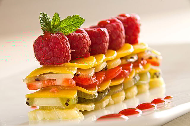 The extensive wine list includes 1,500 wines with a curated selection of rare Bordeaux grand crus not found anywhere else. Chef Rocha retains the traditional flavors of haute gourmand French cuisine, but adds a bit of unexpected fantasy and sophistication for a unique and memorable gastronomical experience—best enjoyed through the chef's table. Some of the most creative and sublime combinations that have earned him his well-deserved accolades are the warm foie gras in cereal dust and apple sorbet, blue lobster with passion fruit and coral emulsion, and king salmon with cucumber jelly, oysters, and caviar.