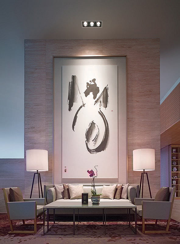 Once inside the lobby lounge, guests are greeted by four enormous Chinese calligraphy paintings by Wang Xu Yuan, depicting women from the Peking Opera.