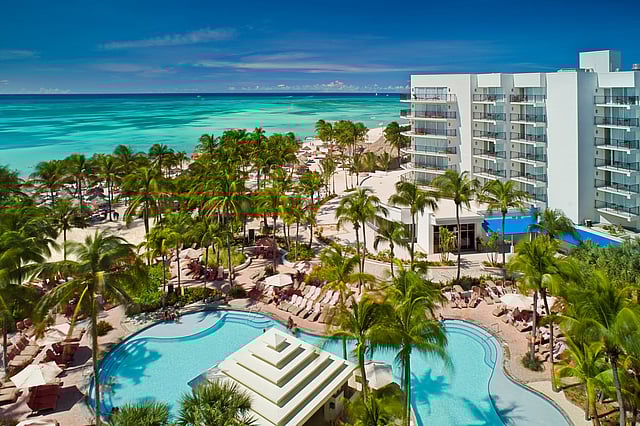 Explore Your Travel Guide to Aruba with Resident team. Welcome to Aruba. A short flight from Miami, this is the perfect little island for a romantic getaway or a family trip. I stayed at the beautiful Marriott Resort & Stellaris Casino, located on the perfect stretch of white sandy beach. It has a grand modern lobby, that includes a restaurant with a round bar, sofas, and plenty of seating. On the side is a Starbucks that is perfect for a quick coffee or snack to go. The check-in was a breeze with a friendly staff. The rooms are spacious and angled perfectly for an ocean view.