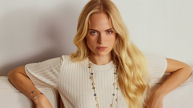 As ever, the Monogram's creative spirit continues to inspire, and new jewels are further being added to Color Blossom, launching even more versatile ways to wear the collection. Two new short necklaces with alternating sun and star motifs come in either pink mother-of-pearl, or malachite. These are joined by a sublime sautoir that mixes the star and sun emblems with pink and white mother-of-pearl.