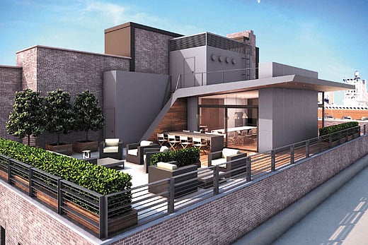 53 Greene Street features five expansive full-floor residences, replete with private elevator access, oversized windows, soaring ceilings up to 13 feet, walnut flooring throughout, gas fireplaces and a building-wide water filtration system. The magnificent 3,510 square feet penthouse offers three bedrooms and four bathrooms, and features a private 2,067 square foot rooftop lounge accessed through massive sliding glass doors that frame the home's kitchen and dining area with fireplace. The four full-floor residences include 2-bedrooms and 3-bathrooms across approximately 2,771 square feet.