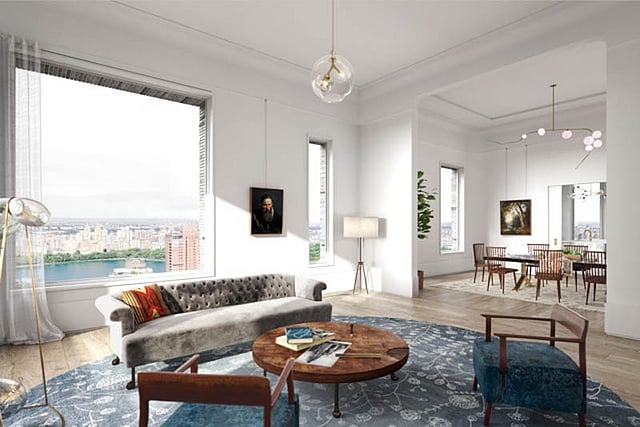 180 East 88th Street evokes a refined, pre-war aesthetic characteristic of traditional UES buildings with picture rails, custom wainscoting, and baseboard reveals featured in primary living areas. Custom kitchens designed by Molteni&C Dada with DDG include honed Italian Statuario marble slab countertops, integrated Gaggenau appliance package and natural brass details. Exaggerated ceiling heights up to 14'-2" and 28′-8" in duplexes and windows up to 9' tall allow for an exceptional volume of space and appreciation of light and views. Many residences feature a formal elliptical gallery, gracefully appointed with herringbone flooring from Austria, plaster cove details and wainscoting.