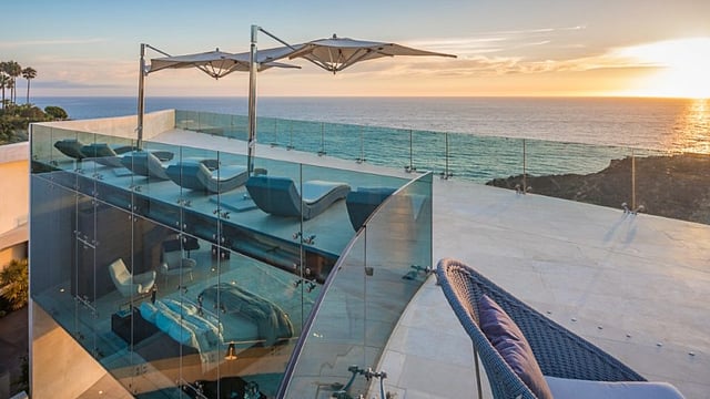 From a distance, it appears to defy gravity, like a glass prism floating above the sea. Up close, the details reveal themselves: walls that blur the boundary between inside and out, sweeping terraces that mirror the horizon, and textures that evoke both warmth and precision.