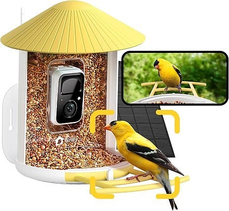 It is smart and simple. It has a clear camera that features close-up videos of them. The camera can even show bright pictures of tiny feathers. It also has a solar panel. The sun gives it power, so you don’t have to charge it much.