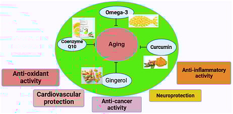 Curcumin is the active compound in turmeric, known for its anti-inflammatory and antioxidant properties. Chronic inflammation is a hallmark of aging and is linked to various age-related diseases. Curcumin supplementation may help reduce inflammation and oxidative stress, potentially slowing the aging process.