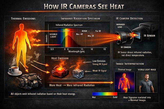 Everything around you—people, vehicles, buildings, animals—gives off heat. That heat creates infrared radiation, which an infrared camera can detect and turn into an image.