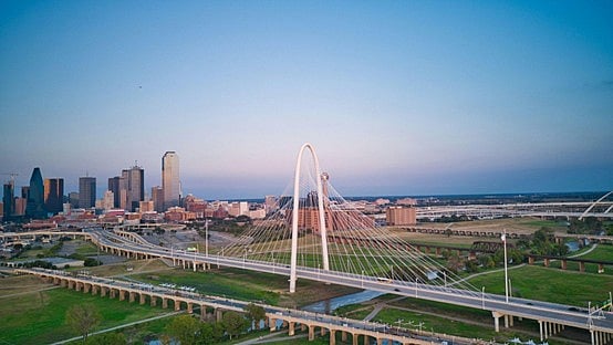 The Dallas Skyline is defined by such architectural giants as the Margaret Hunt Hill Bridge.