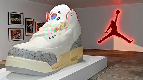 The experience unfolded in layers. Attendees were welcomed into a world that blended Korean symbolism with urban design and basketball nostalgia. A six-foot sculpture of the AJ3 “Seoul 2.0,” meticulously built to scale, served as both photo moment and artistic centerpiece. Neon Jumpman installations and a stylized Korean flag display added cinematic depth to the space.