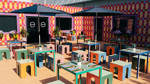 Originally created by Ilori for Superblue Miami in 2021, the café’s architectural containers are instantly recognizable for their playful palette and bold shapes. Inside and out, Blue Café continues that visual language, creating a space that feels like an extension of the artwork itself.