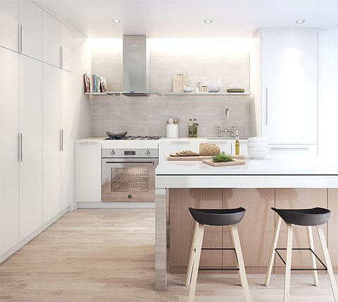 Solid white-oak floors add a warm aesthetic to the units, while ornate detailing and crafted finishes come together with flexible layouts, interspersed with unique build-outs and alcoves.