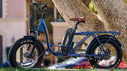 The M-81 Cargo Ebike's wide and sturdy tires offer enhanced traction and stability, making it the perfect companion for urban commuting and off-road adventures alike. The fat tires provide a larger contact patch with the ground, improving grip and stability on uneven surfaces. Whether you encounter potholes, gravel, or curbs, the M-81's tires absorb shocks and bumps, providing a comfortable and controlled ride. No matter the terrain, this bike allows you to navigate through your surroundings confidently.